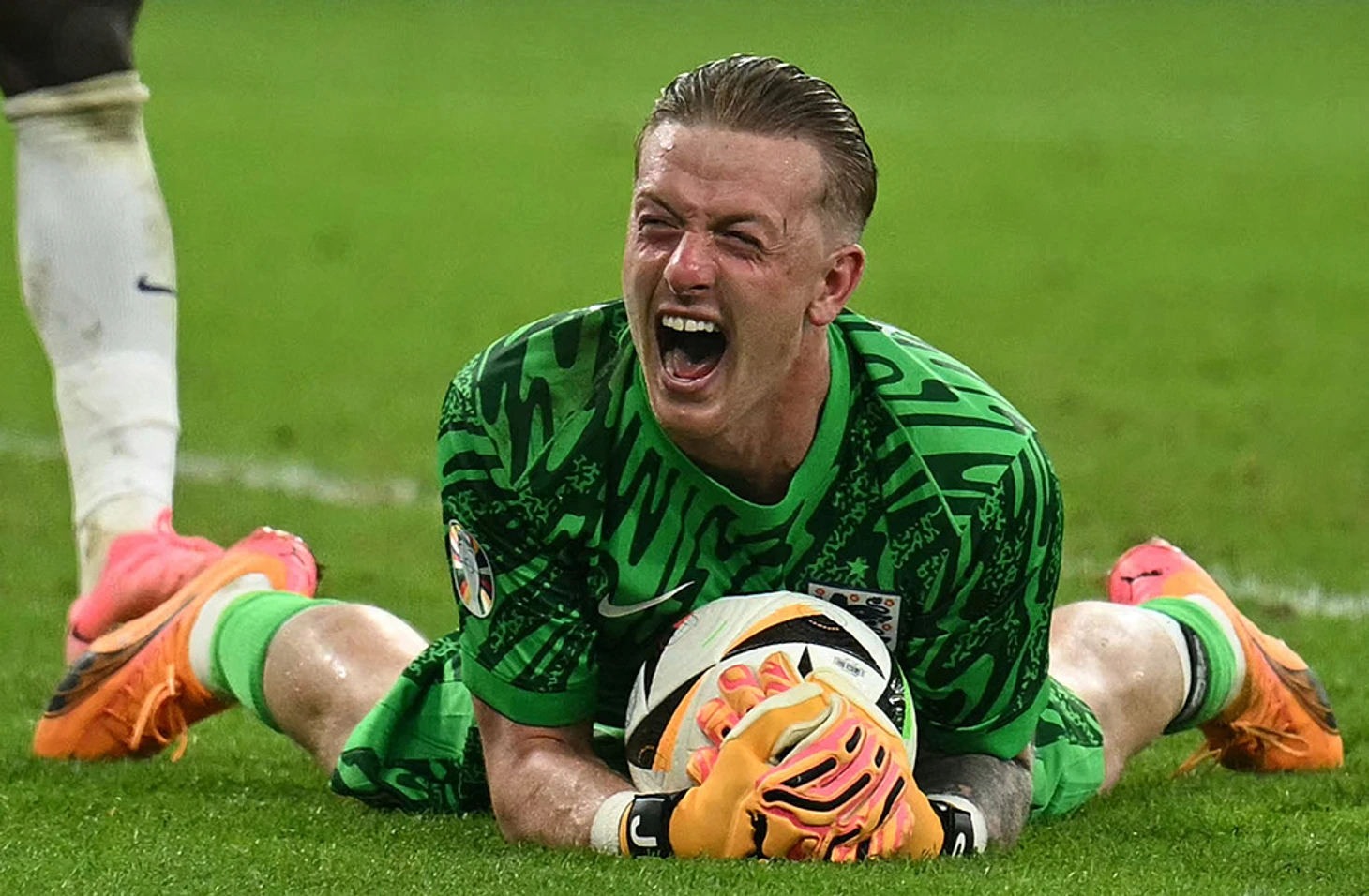 Джордан Пикфорд забрал мяч в руки и дико рад выходу в четвертьфинал.