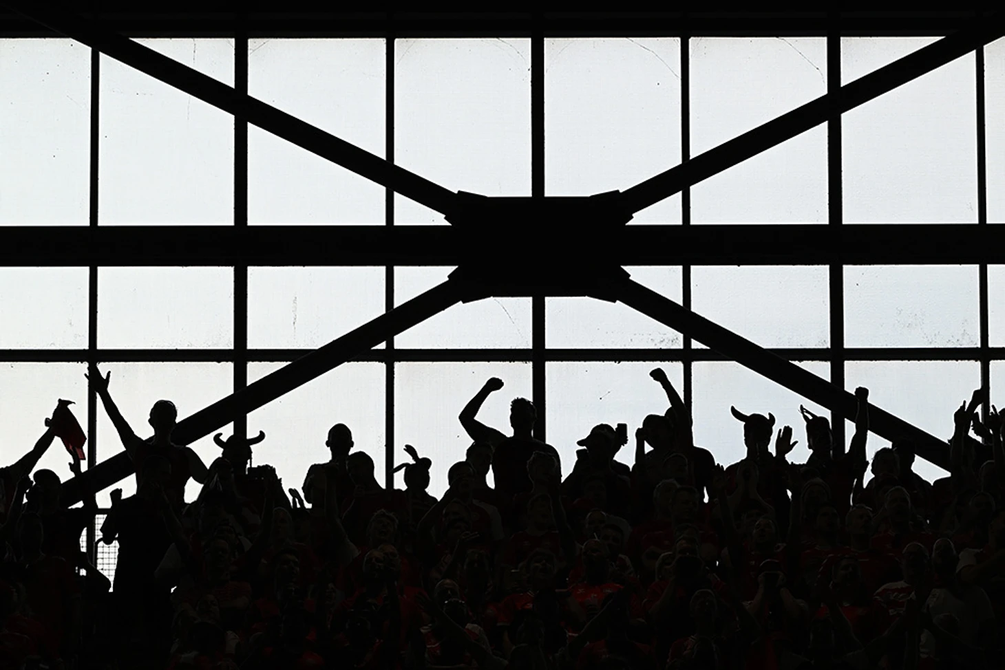 Германия – Дания. По рогам на некоторых из этих силуэтов можно догадаться, что это болельщики Дании.