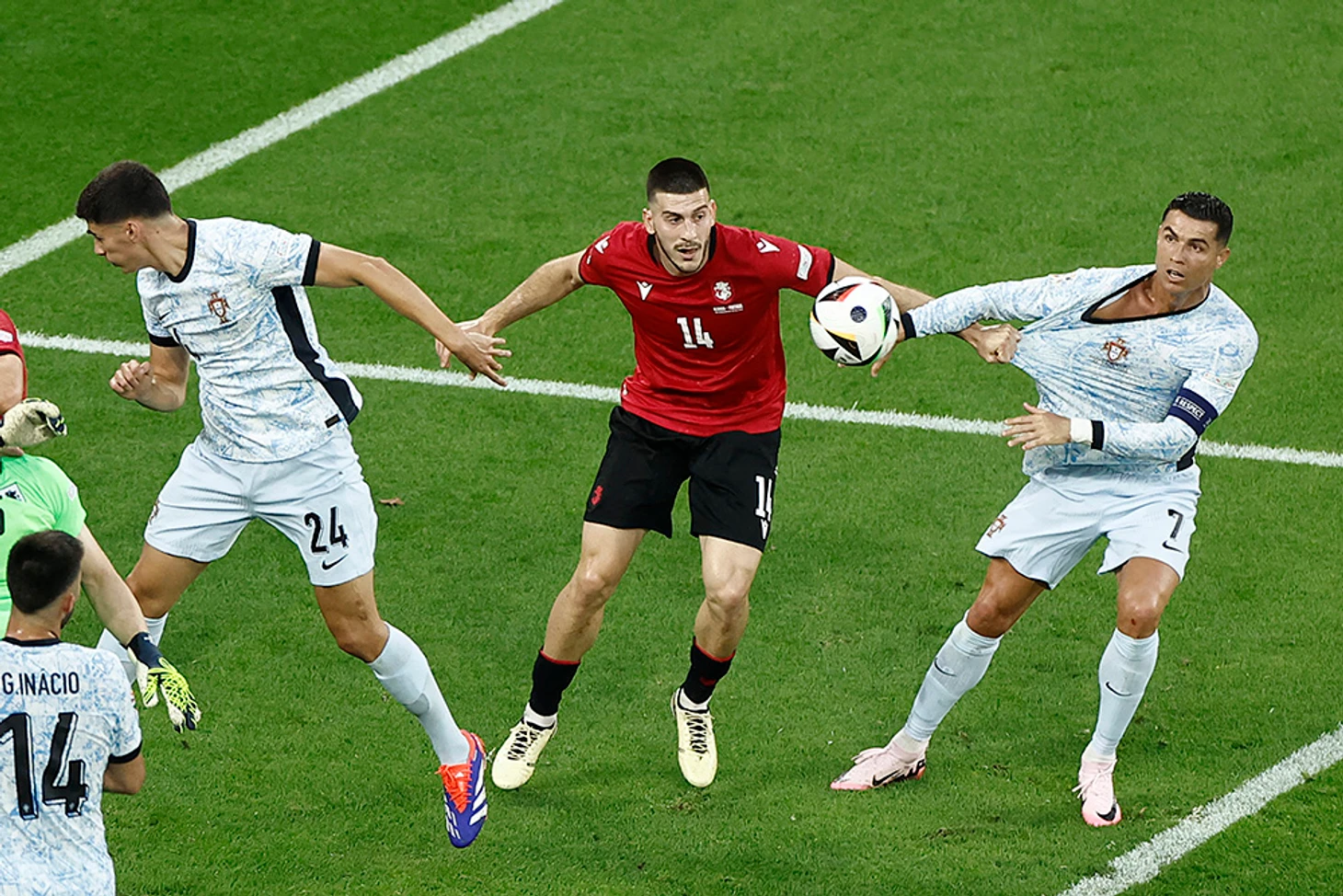Грузия – Португалия. Криштиану Роналду и Антониу Силва затянули Луку Лочошвили в хоровод. Не помогло, грузины сенсационно обыграли фаворитов.
