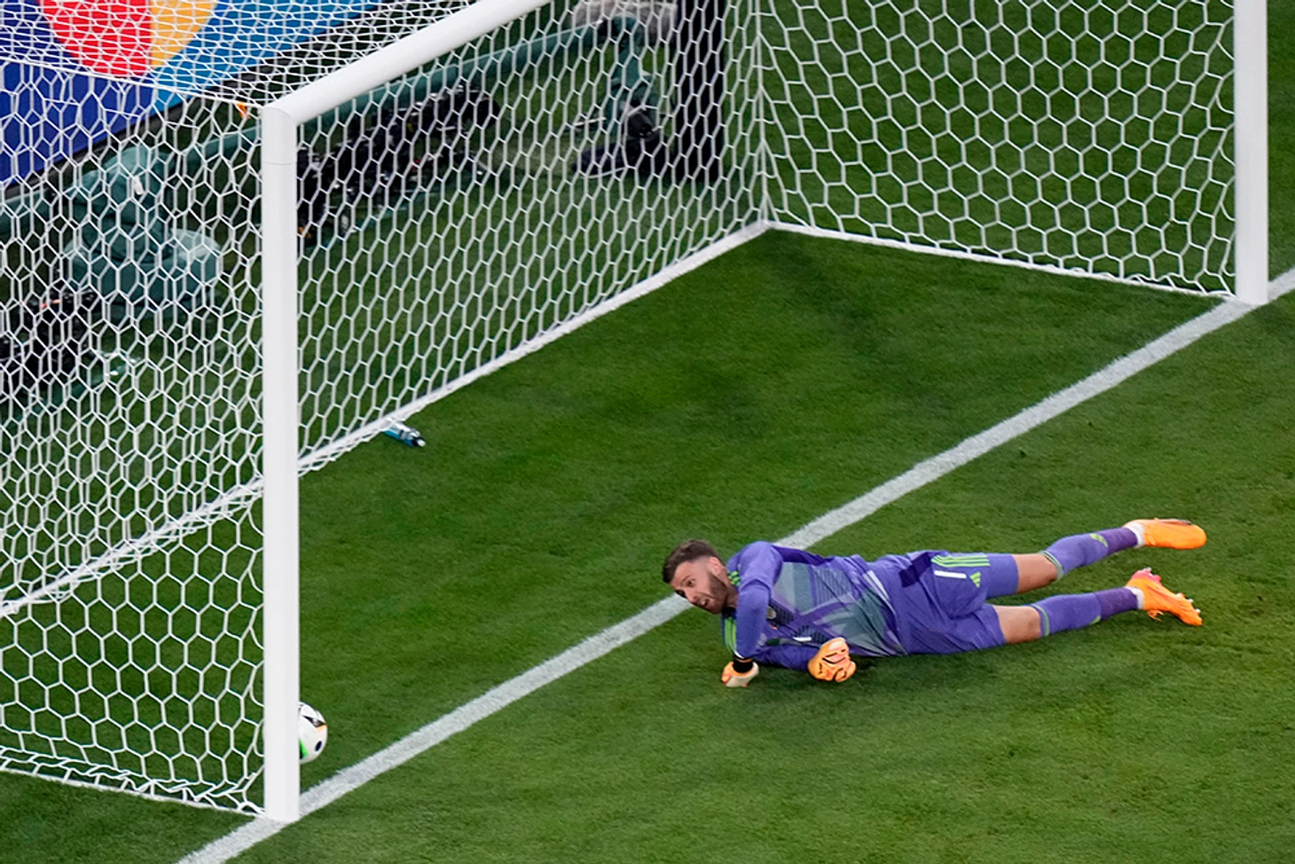 Матч подарил одну из самых полыхающих концовок турнира. На фото вратарь Мерт Гюнок летит мимо мяча. Австрийцы не смогли забить и здесь, и чуть позже, когда турок совершил самое эффектное вратарское спасение турнира.