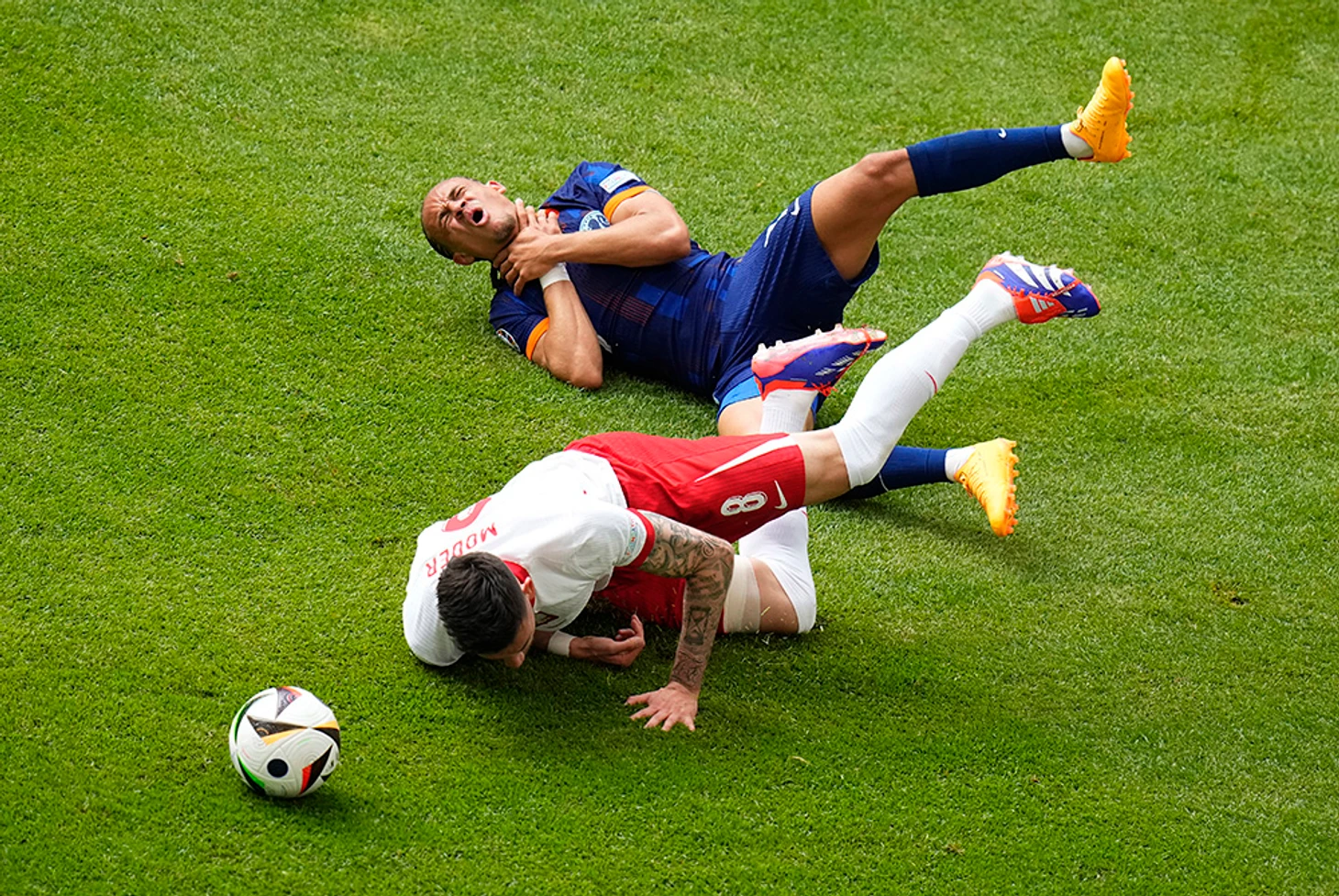 Франция – Австрия. Главное столкновение Евро. Килиан Мбаппе врезается в плечо Кевина Данзо и ломает нос.