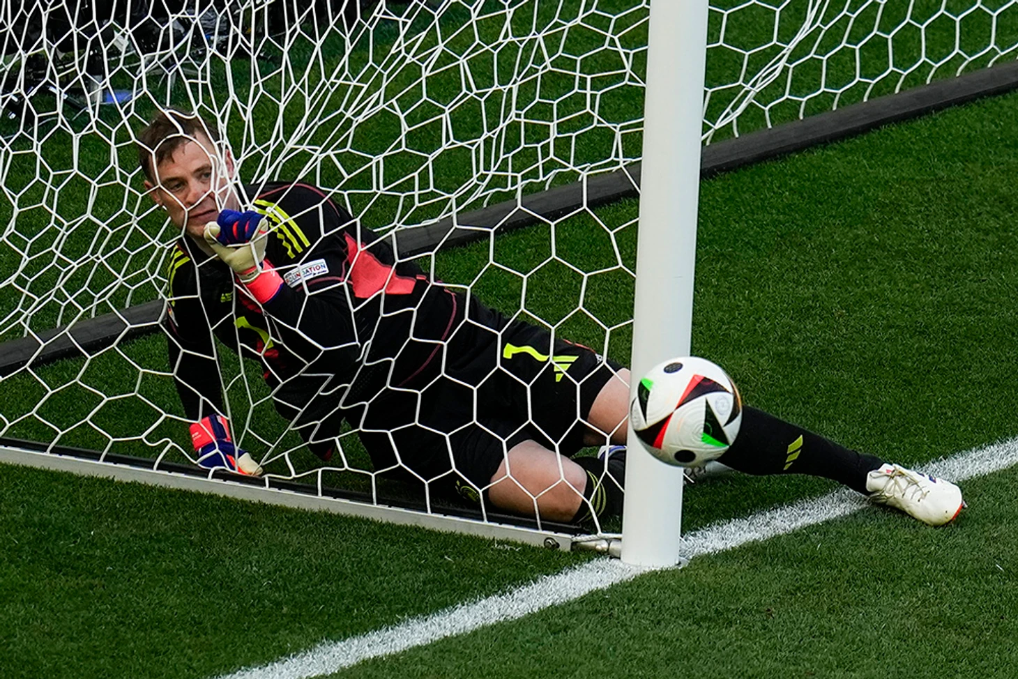 Германия – Шотландия. Важное мгновение. Первый гол турнира. После удара Флориана Виртца мяч пересекает линию ворот.