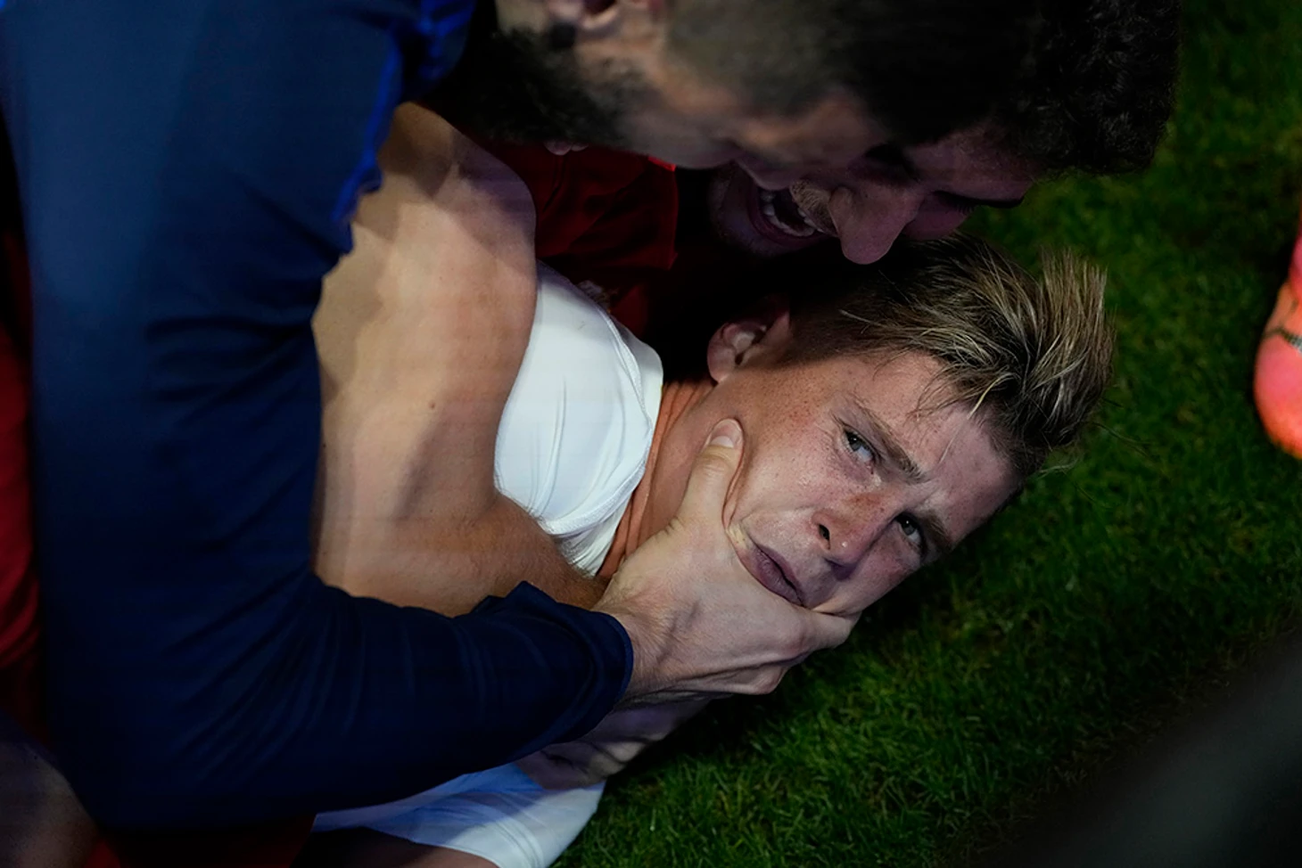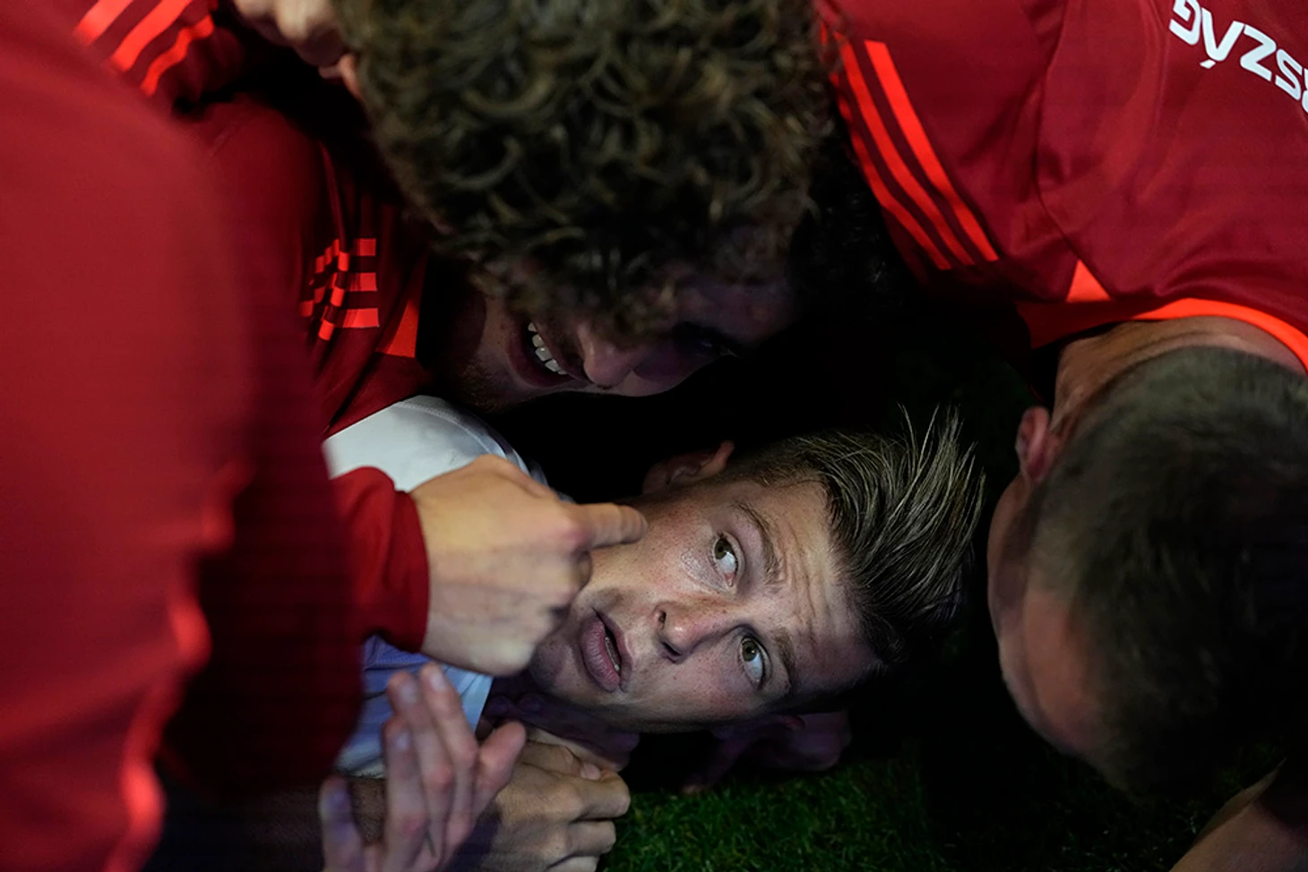 Но нет. На этих фото – венгр Кевин Чобот, которого завалили партнеры после победного гола на 90+10. Сборная Венгрии так и не вышла в плей-офф, но в моменте была безумно рада.