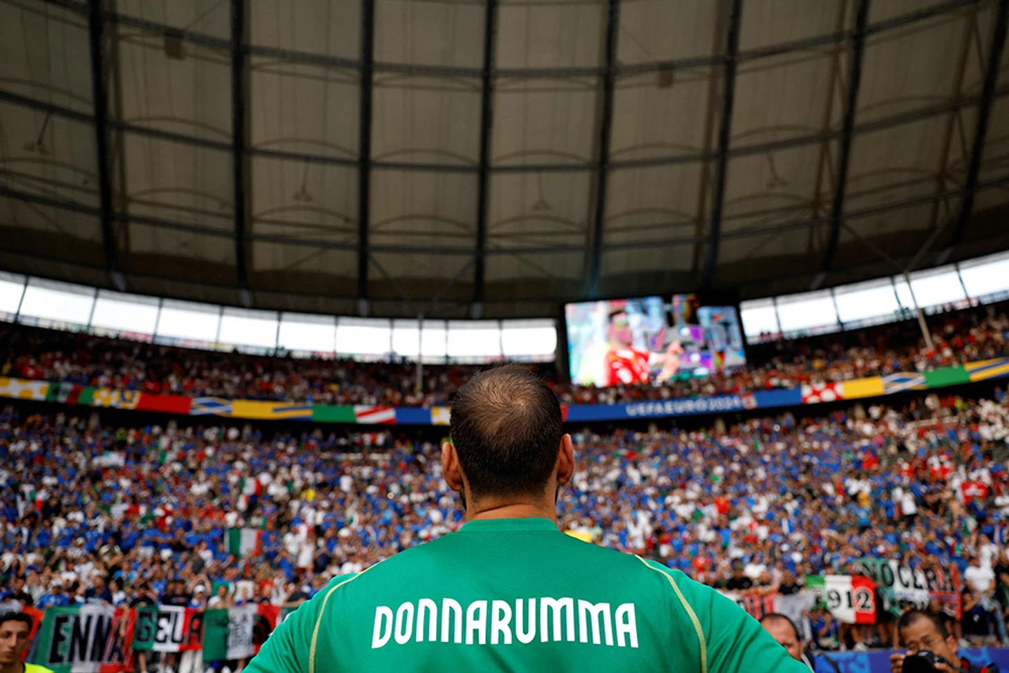 Италия – Швейцария. Джанлуиджи Доннарумма прощается с итальянскими фанатами, а на экране – радость победивших швейцарцев.