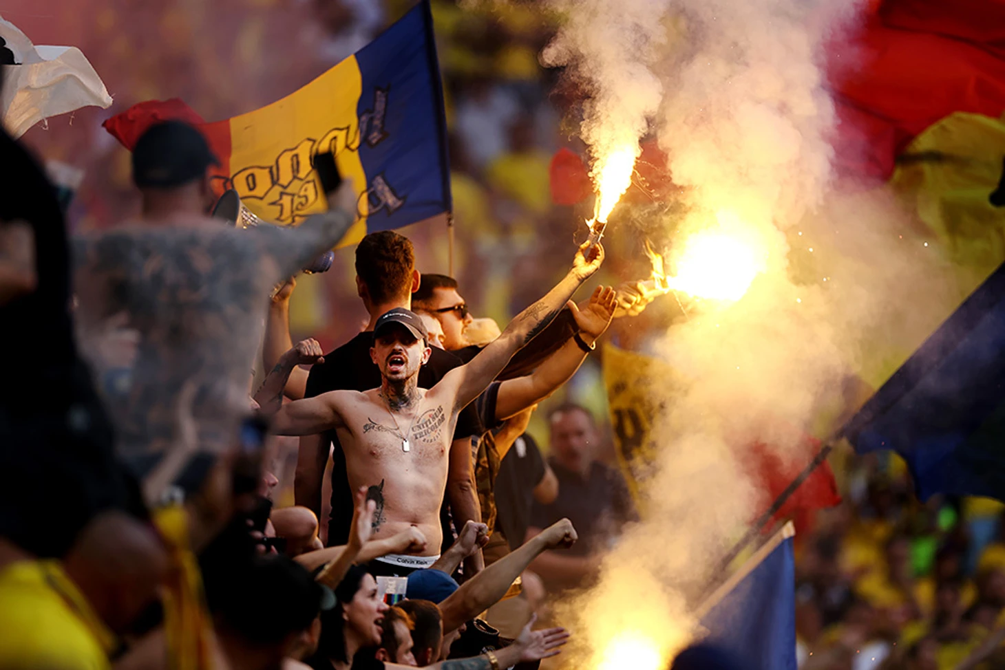 Румыния – Нидерланды. Румынские фанаты жгут файеры.