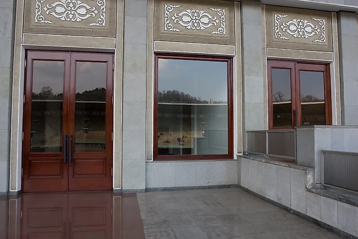 На пустом стадионе мы смотрели футбол из ВИП-ложи. Оттуда а апартаменты для почетных гостей вела огромная дверь из тонированного стекла и какого-то очень благородного дерева. И вот, когда стадион залило солнце, в этом стекле очень красиво отражалось все величественное сооружение. Не сделать на свою мыльницу такой снимок я не мог. Однако стадион только казался пустым: уже через минуту ко мне подошел какой-то человек и настойчиво попросил удалить снимок. Как назло, никого из сопровождавших рядом не было, а лезть в бутылку я не стал. Шедевр был утерян безвозвратно. Потом, когда рассказал им эту историю, они долго извинялись. Мол, вы понимаете, во время матчей нашей сборной через эту дверь проходят высокопоставленные товарищи и даже – представляете – сам, сам товарищ Ким Чен Ир! Конечно, мы понимаем, что, скорее всего, у вас не было никаких дурных намерений, но вы же наверняка знаете, сколько врагов у нашей родины и какое внимание мы вынуждены уделять вопросам безопасности...