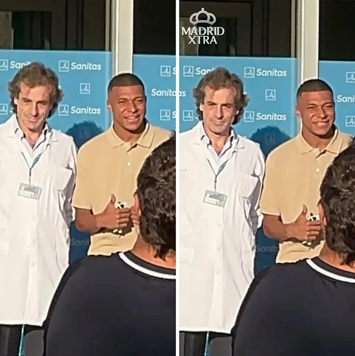 Вот Мбаппе позирует с врачом «Реала» перед осмотром.