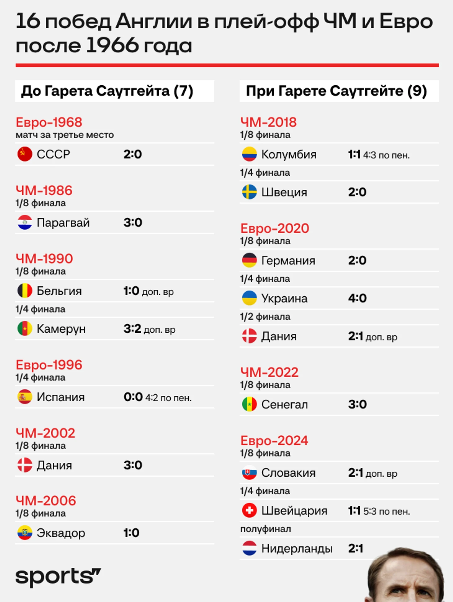 66 лет до Саутгейта: семь побед в плей-офф крупных турниров.