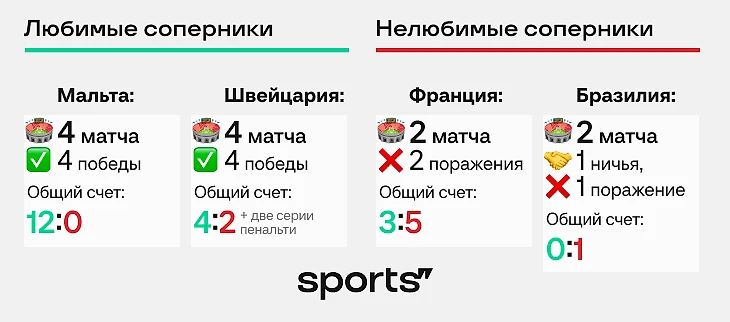 ● Франция и Бразилия – единственные соперники, которых Англия ни разу не обыграла за все годы тренерства Саутгейта.
