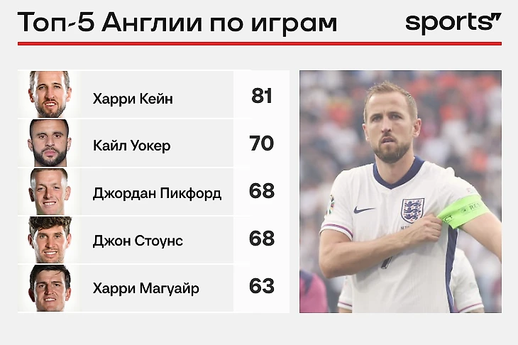 ● Больше чем в половине матчей Англии Саутгейта сыграли: Джордан Хендерсон (52), Киран Триппьер (54), Рахим Стерлинг (55), Маркус Рэшфорд (57), Деклан Райс (58).