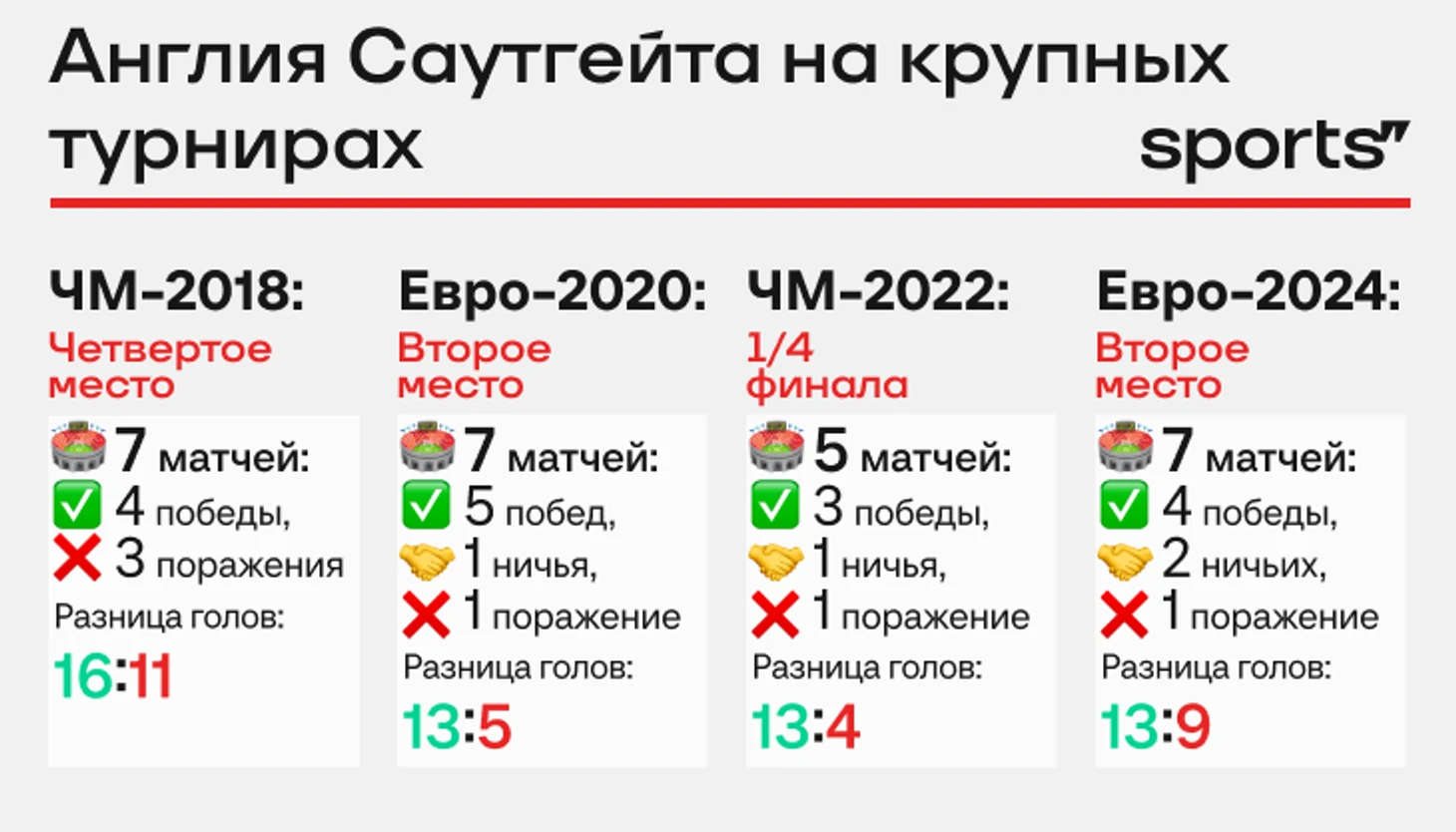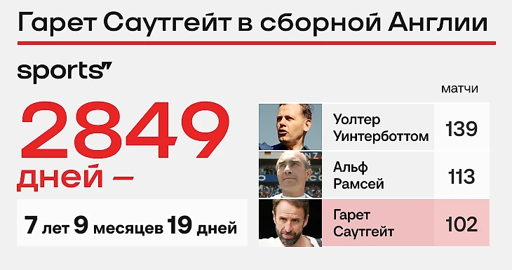 ● У Саутгейта больше выходов в финал топ-турниров, чем суммарно у всех остальных тренеров сборной. До поражения от испанцев Гарет выводил англичан в финал Евро-2020 и проиграл там Италии по пенальти. Единственный тренер, который тоже был с Англией в финале топ-турнира, – Альф Рамсей. При нем выиграли ЧМ-1966.
