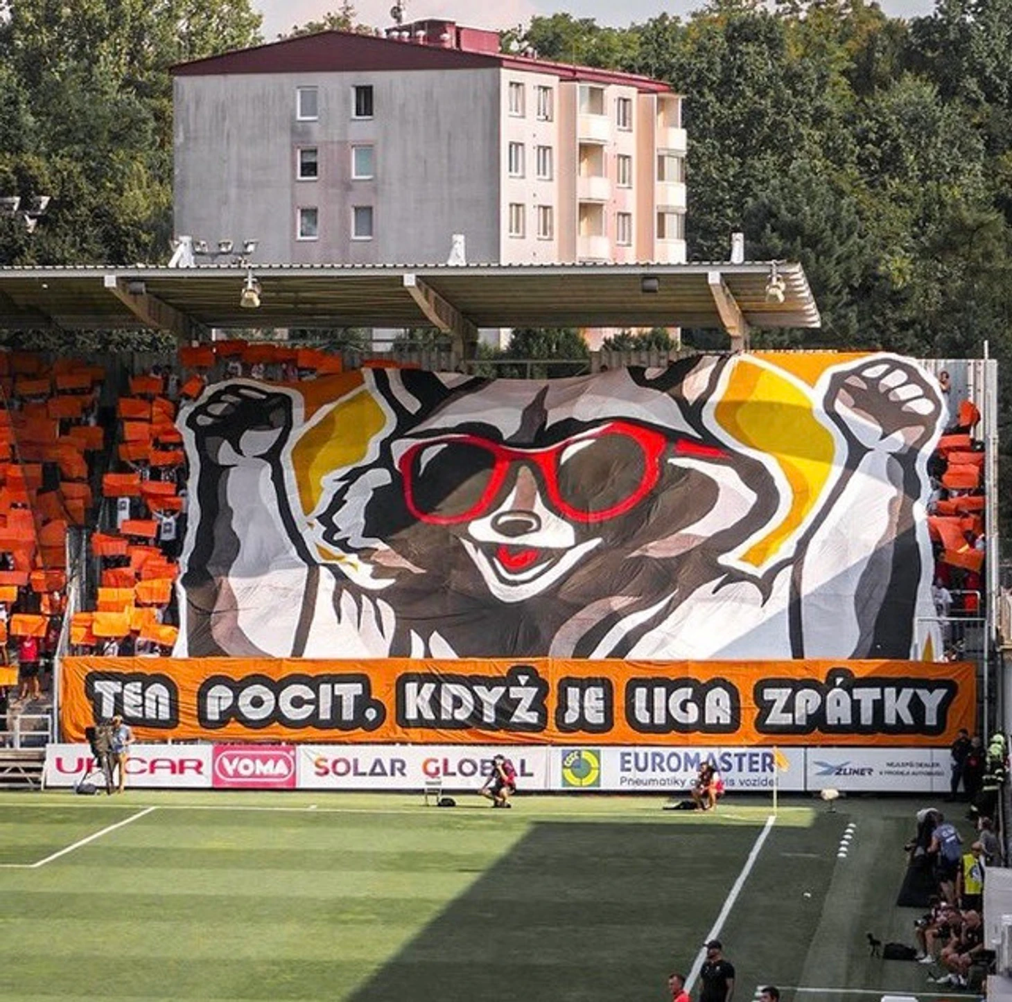 А уже вчера «Славия» провела первую официальную игру сезона — в стартовом туре нового розыгрыша чемпионата Чехии пражанам предстояло сыграть выездную игру против «Словацко». Примечательно, что последним выездом минувшего сезона для них тоже был поединок в Угерске-Градиште, и там фэны «Славии» впервые отметились перфомансом с мемным енотом Педро, который дополнили лозунгом «То чувство, когда ты на выезде». Вчера же они решили продолжить развивать данное направление, снова сделав баннер с Педро, но на этот раз поменяв подпись на «То чувство, когда начинается лига».