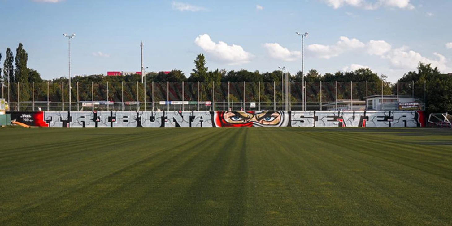 А за несколько дней до этой торжественной встречи фанатов и футболистов ультрас «Славии» очень круто оформили одну из стен на тренировочной базе клуба фанатским граффити размером 80 на 3 метра.