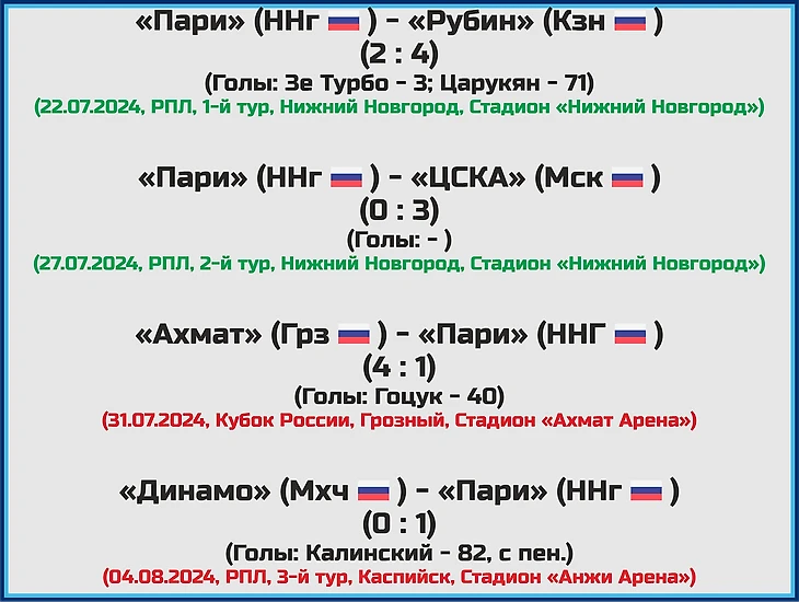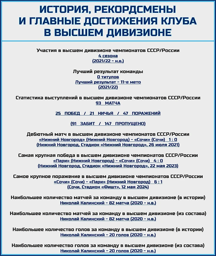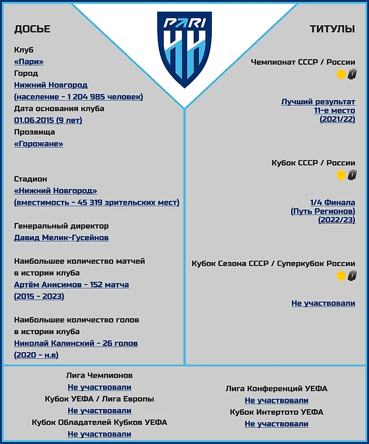«Пари НН» в сезоне-24/25: состав, статистика, исторические факты и многое другое