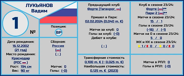 Главным конкурентом у него будет 22-летний воспитанник питерского «Зенита» Иван Кукушкин, уже появлявшийся по ходу прошлого сезона в основе «Пари».