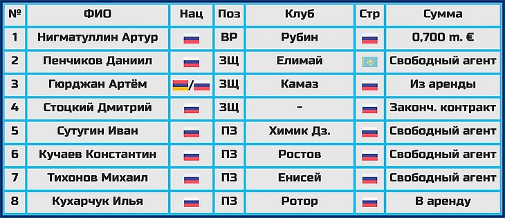 На бровках борьба за основной состав тоже будет непростой - слева могут сыграть болгарин Матео Стаматов, вернувшийся в клуб после аренды в «Муроме» Данила Ведерников или талантливый Максим Шнапцев, а вот справа в наличии опытный Дмитрий Живоглядов, отлично зарекомендовавший себя в прошлом сезоне Кирилл Боженов и взятый в аренду у « Краснодара» Александр Эктов.
