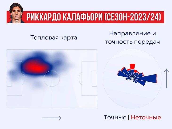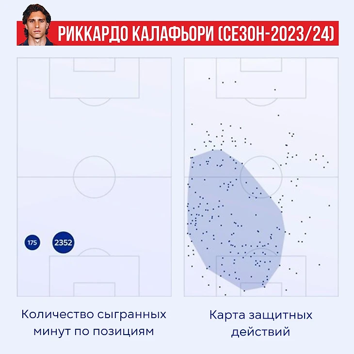 Это решение оказалось мастерским ходом. Несколько месяцев, проведенных Калафьори в центре защиты, привели к тому, что летом 2023-го он перешел в «Болонью». Главный тренер «красно-синих» Тиаго Мотта даже не думал использовать его слева. Одного сезона в Серии А хватило и для вызова в сборную Италии, и для привлечения внимания топ-клубов. Риккардо попал на радары «Арсенала».