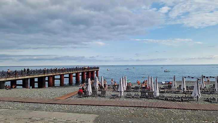 Прямо напротив «Фишта» располагается живописный пирс – главная смотровая площадка всего побережья федеральной территории Сириус. Здесь на выезде устраивала факельные шествия зенитовская «Ландскрона», а местные мальчишки облюбовали спот в качестве трамплина для прыжков воду. Как-то довелось видеть ныряльщиков даже в марте-месяце.