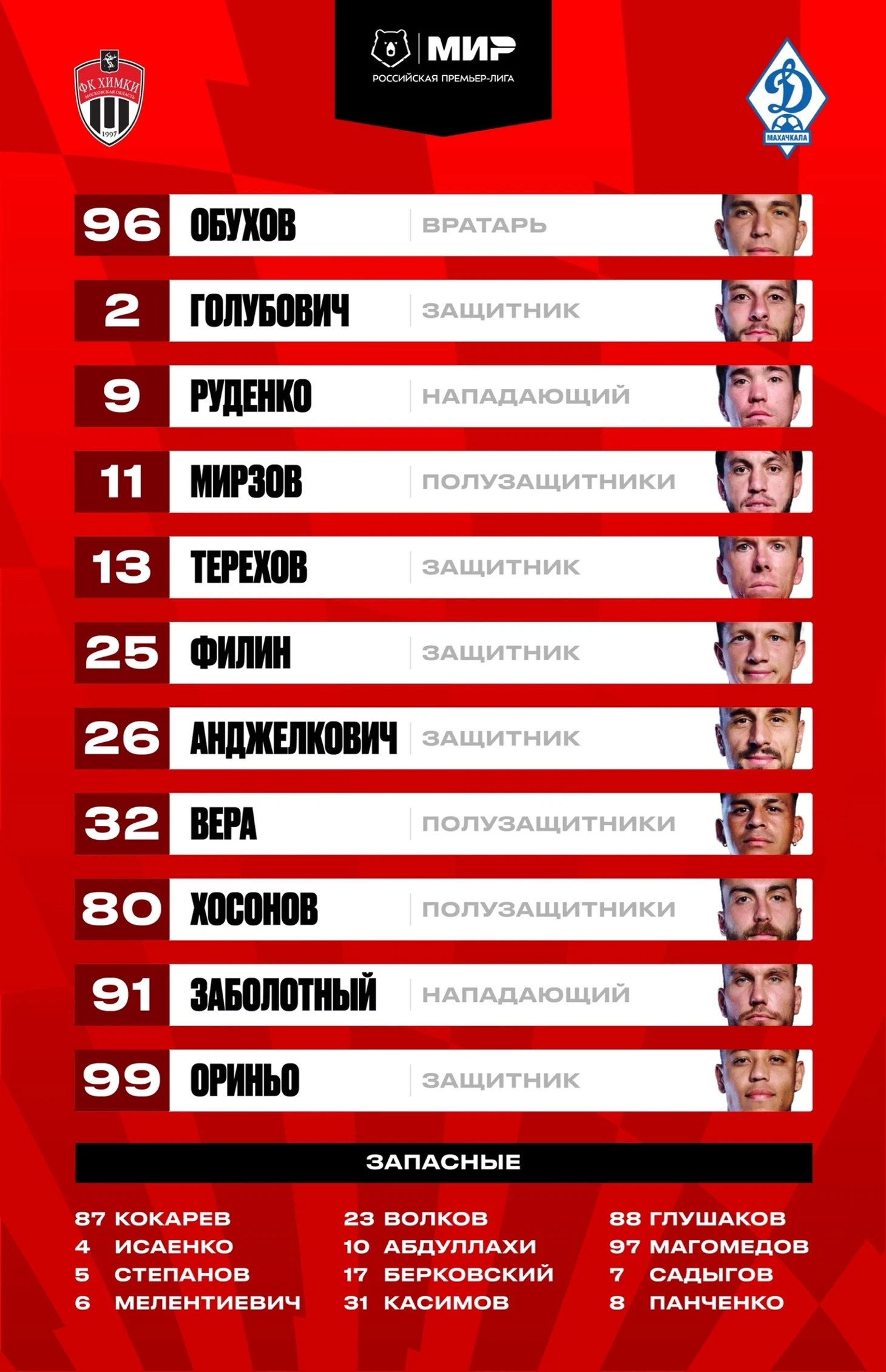 «Химки» начали матч с активных проходов по флангам. Нападающий Александр Руденко нанёс первый удар по воротам уже на 31-й секунде матча. «Красно-черные» владели инициативой в первую треть матча. На 19-й минуте произошёл первый пограничный эпизод с падением Резиуана Мирзова в штрафной соперника. После вмешательства VAR судья назначил пенальти в ворота «Динамо». Однако Алекснадр Руденко не реализовал одиннадцатиметровый, пробив в перекладину.