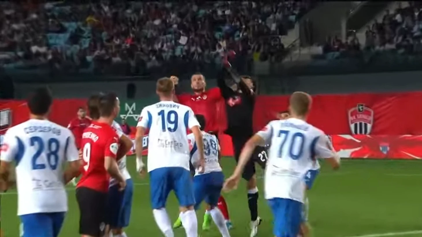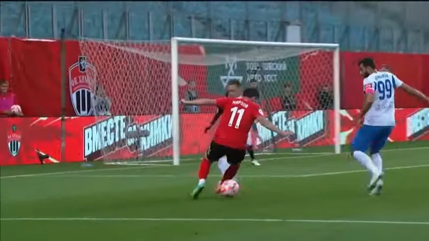 Заболотный левой рукой отмахивается в лицо вратарю Махачкалы и «выигрывает» борьбу за мяч, который только чудом не проходит в ворота Динамо. И судья назначает угловой в пользу ... Химок.