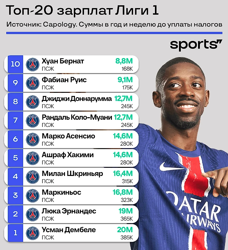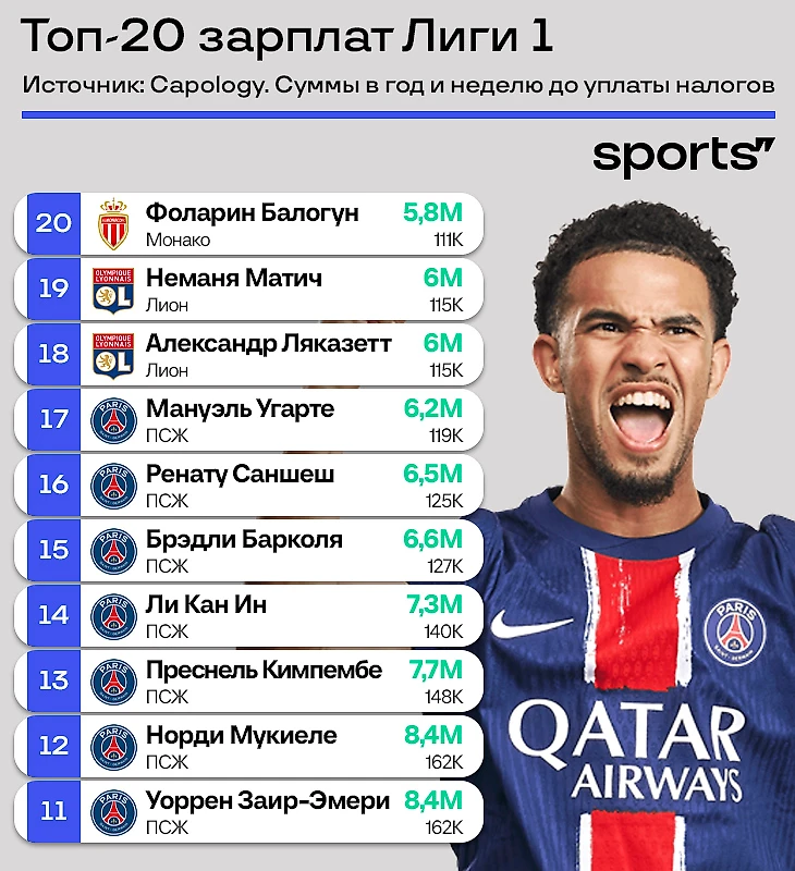 ● Приносим извинения «Баварии», которая оставляет Бундеслигу невероятно конкурентной. В топ-17 самых высокооплачиваемых футболистов Лиги 1 только «ПСЖ».