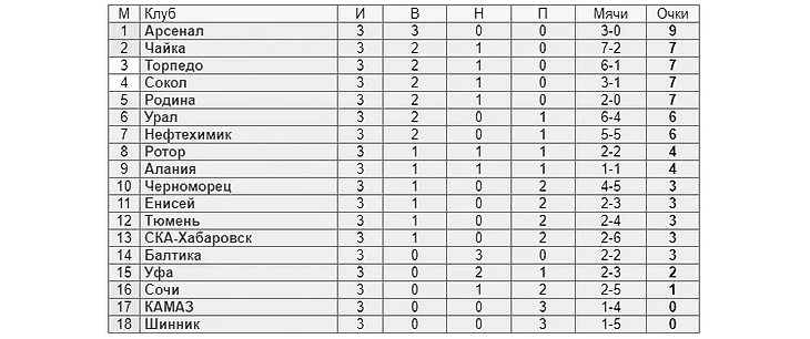 ● Опустившийся из Премьер-Лиги «Сочи» в трёх стартовых турах сезона Первой лиги набрал лишь одно очко из девяти возможных. ● «СКА-Хабаровск» прервал серию из шести поражений подряд (с учётом прошлого сезона).