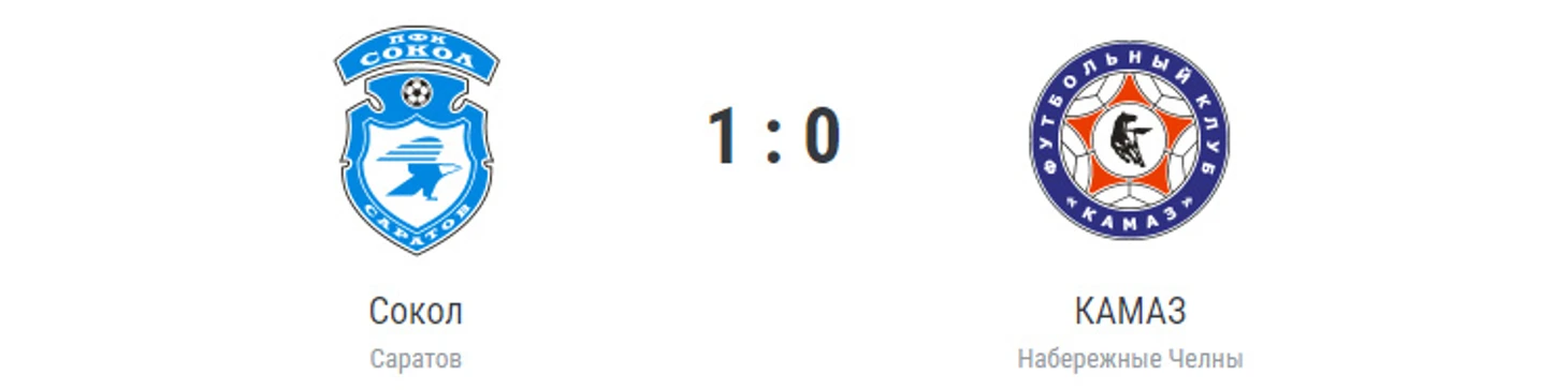 Гол: Карпицкий, 51. «Сокол» (Саратов): Косаревский, Молодцов (Шпитальный, 88), Иванов, Забелин, Синяк, Гуз, Сасин (Чуриков, 88), Полубояринов (Ермолин, 59), Чобанов, Бабаев (Саадуев, 69), Карпицкий (Максименко, 59). «КАМАЗ» (Набережные Челны): Анисимов, Почивалин (Абрамов, 65), Маругин, Кусяпов (Ратников, 71), Аюкин (Гюрджан, 73), Козлов, Горелов, Стародуб, Акбашев (Защепкин, 65), Фартуна (Ермолаев, 71), Караев. Наказания: Бабаев, 64. Абрамов, 90+2 (предупреждения). Судья: Лапатухин (Москва). 27 июля. Саратов. Стадион «Локомотив». 3180 зрителей.