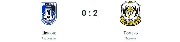 Голы: Кенфак, 59 (0:1). Коротаев, 90+4 (0:2). «Шинник» (Ярославль): Митров, Скворцов (Косогоров, 64), Загре, Черный, Шакуро (Джон, 69), Алейников, Султонов (Малахов, 64), Сухомлинов, Куль (Зинков, 77), Самойлов, Жамалетдинов (Лаук, 64). «Тюмень»: Савин, Бем, Сухорученко, Шавлохов, Воропаев, Савинов (Петров, 87), Талалай, Кенфак (Коротаев, 64), Кулишев (Медведев, 64), Ткачук (Марьянов, 73), Купцов (Кленкин, 73). Наказание: Жамалетдинов, 57 (предупреждение). Судья: Перезва (Раменское). 28 июля. Ярославль. Стадион «Шинник». 2823 зрителя.