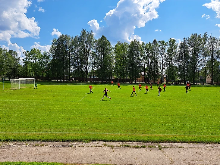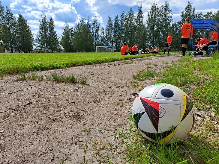 Поле… ну более-менее. Трава, конечно, не идеальная, да и сам грунт какой-то хлипкий, но играть можно.