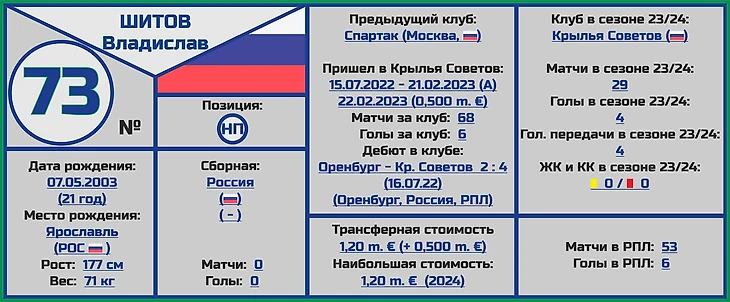 Ну и третьим обязательно нужно упомянуть крайне перспективного Владислава Шитова, который сейчас как раз является основным центральным нападающим в команде, но и на флангах атаки при надобности выйти может.