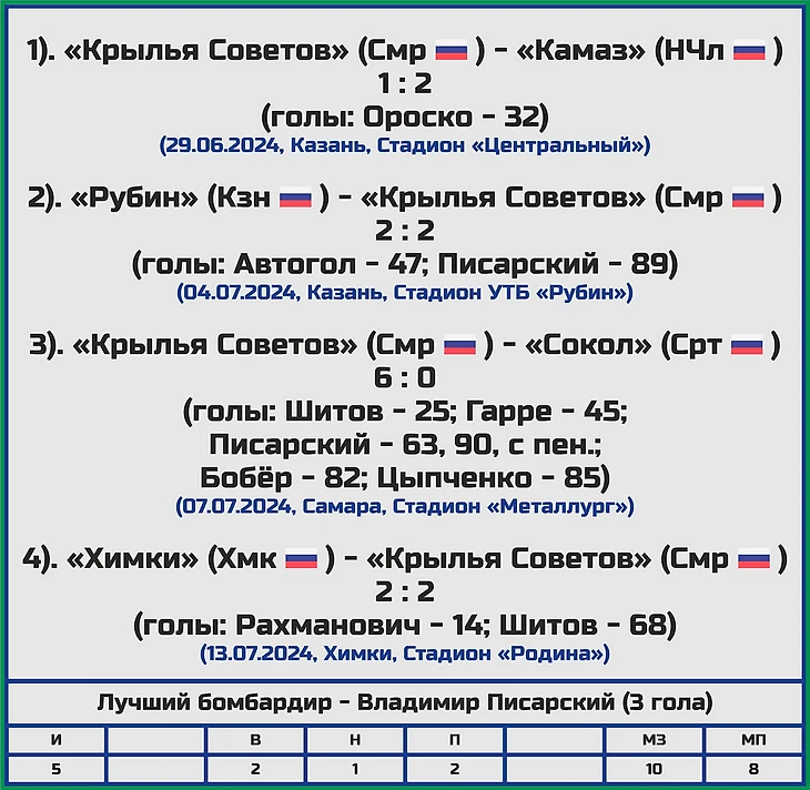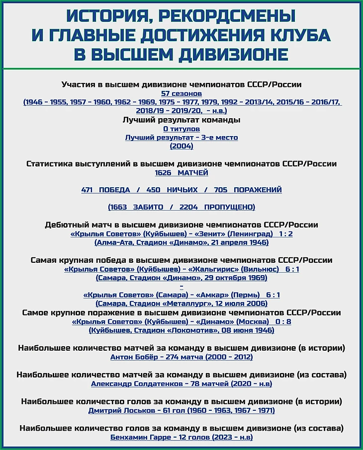 Статистическое превью ФК «Крылья Советов» от блога «Футбольные Чукарички».