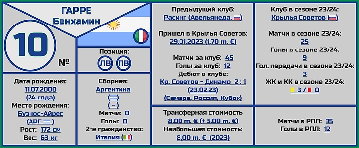 Аргентинец Бенхамин Гарре пополнил состав «волжан» зимой 2023 года и влился в команду настолько хорошо, что теперь без него атаку самарцев представить себе достаточно сложно.