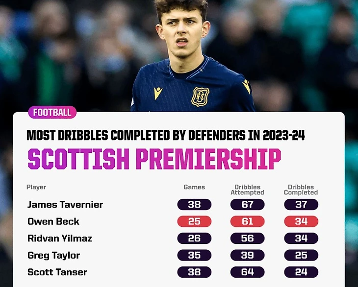 Капитан «Рейнджерс» Джеймс Тавернье был единственным защитником, выполняющим больше передач, чем Бек, в прошлом сезоне в высшем дивизионе Шотландии. Молодой валлиец также занял второе место по результативным передачам (58) и третье место по созданным моментам (56) среди защитников.
