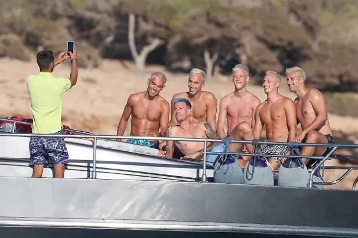 Дани Ольмо отдыхает на Ибице с компанией приятелей-двойников. 26-летний испанский полузащитник и его друзья, отдыхая на яхте, сделали одинаковые прически.
