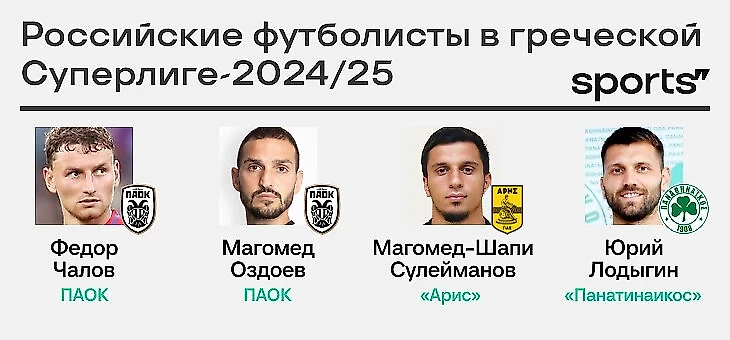 С учетом Федора Чалова в чемпионате Греции теперь четыре россиянина: одноклубник Магомед Оздоев (ПАОК), Магомед-Шапи Сулейманов («Арис») и Юрий Лодыгин («Панатинаикос»).