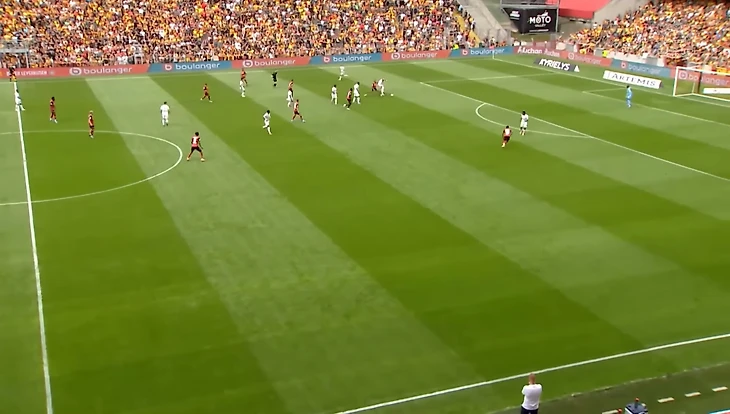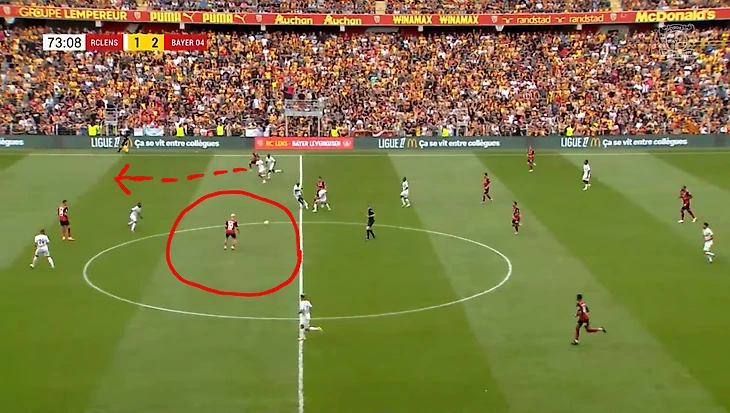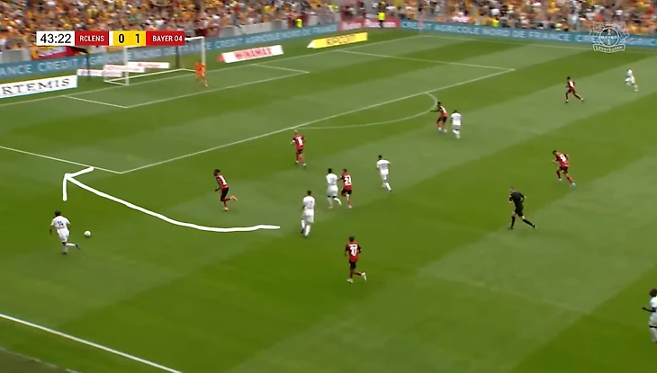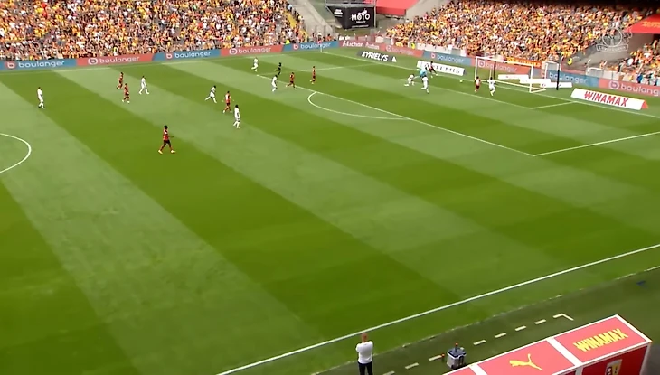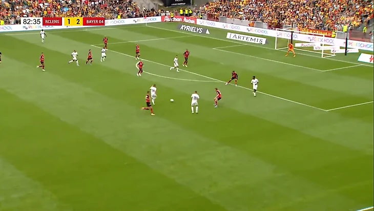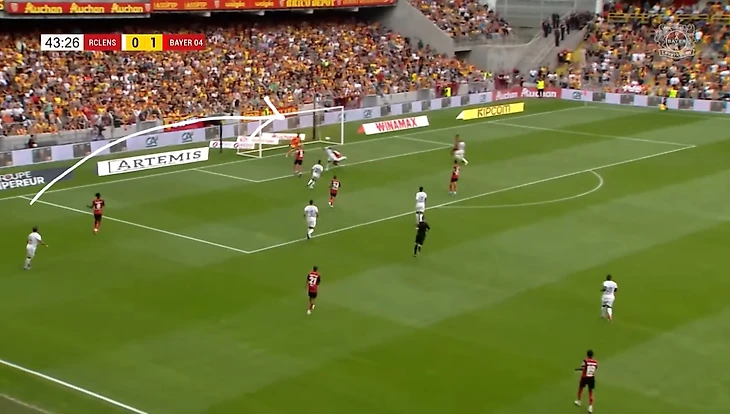 На полностью заполненном стадионе «Боллар-Делелис» команда Хаби Алонсо сразу же включилась в игру и уже на 5-й минуте открыла счёт в матче. Амин Адли запрессинговал защитника «Ланса» после того, как потерял мяч.