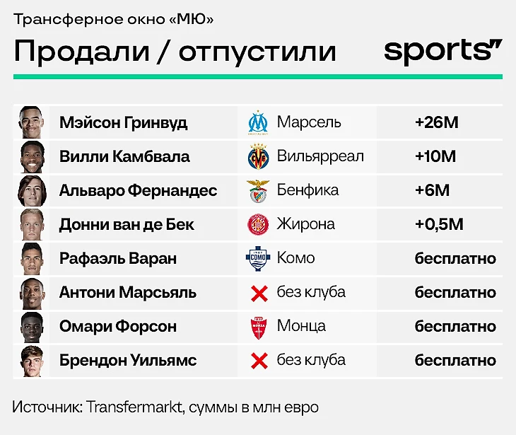 В списке – только футболисты, у которых уже есть согласованные контракты с «МЮ».