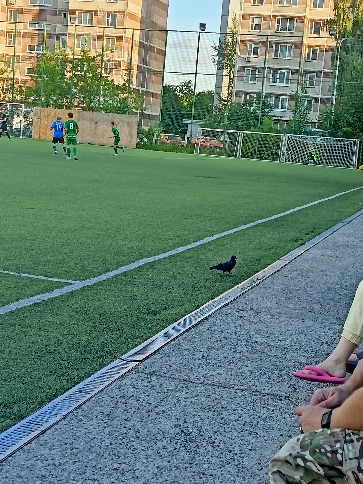 Второе лирическое отступление - нашествие на поле голубей)) Почему-то именно вчера они прилетели и пытались что-то, видимо, съедобного, найти на искусственном газоне на ул. Пушкина, д. 23 а. Т.к. голубиным языком я не владею, выяснить, какова их цель пребывания на стадио, не представилось возможным.