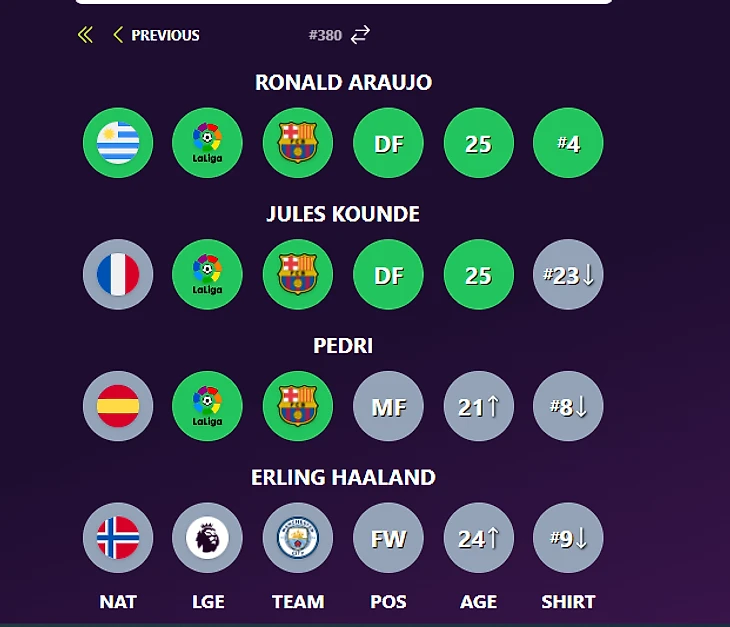 Who Are Ya – Тоже угадывание футболиста. Вводите свой вариант, и у вашего игрока показываются характеристики (Страна, лига, позиция, клуб, возраст и т.д), если какая-то из них загорается зеленым, то она совпадает с характеристикой загаданного игрока. Это подсказка. Используя ее, пробуете угадать снова, получаете новые совпадения, новые подсказки и доходите до ответа. Всего 8 попыток назвать правильную фамилию.