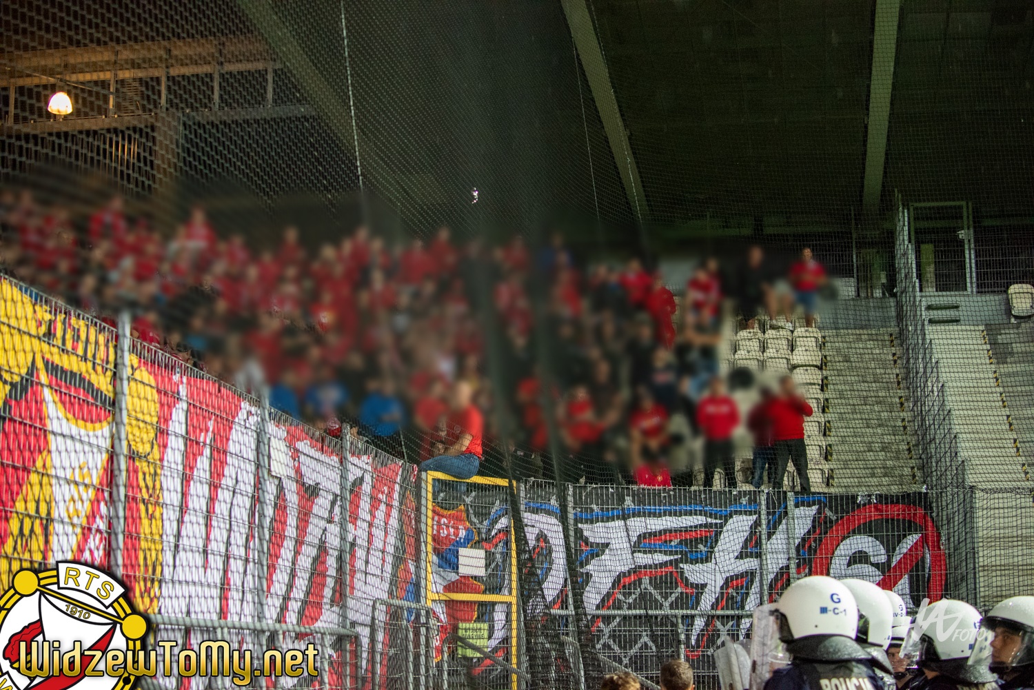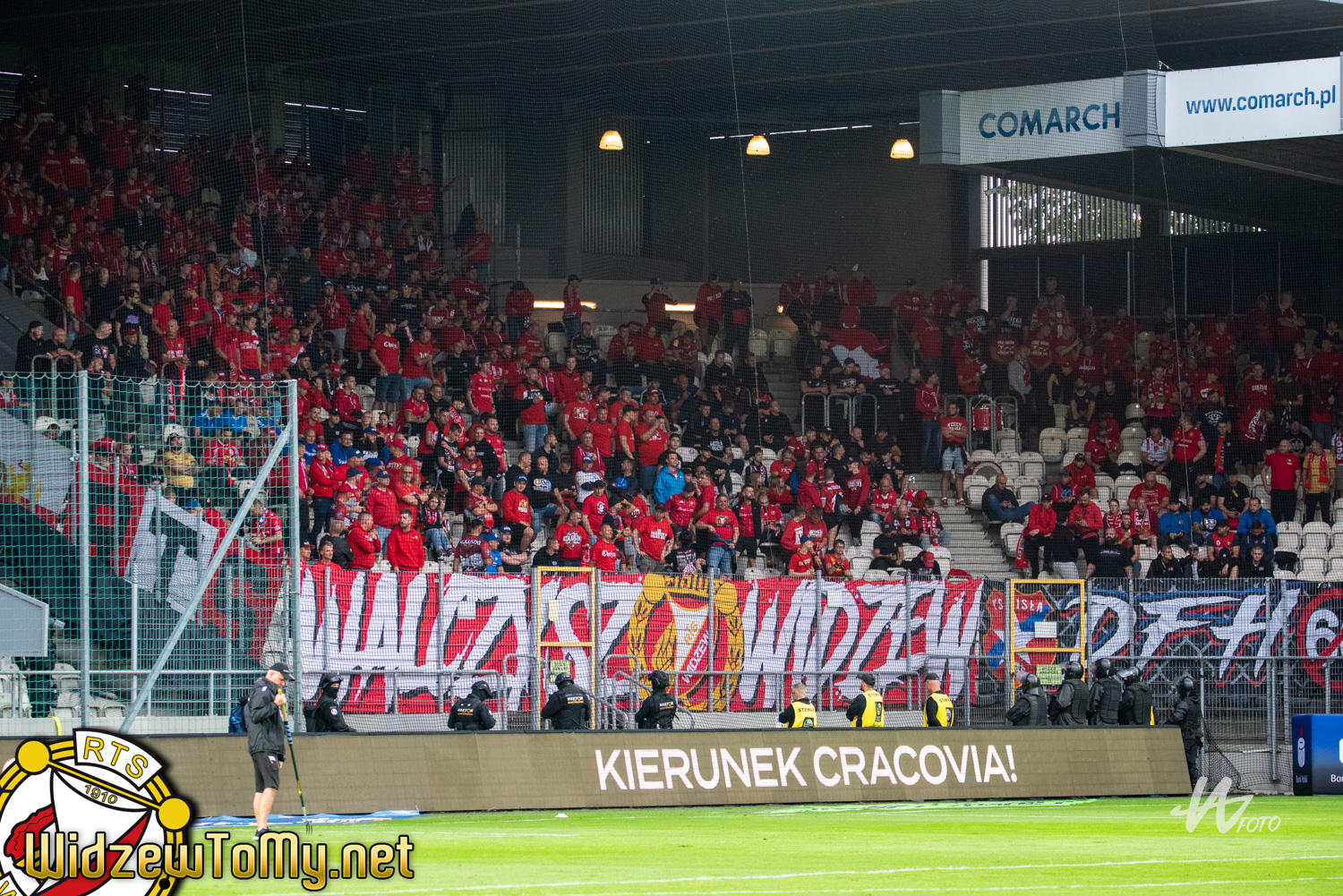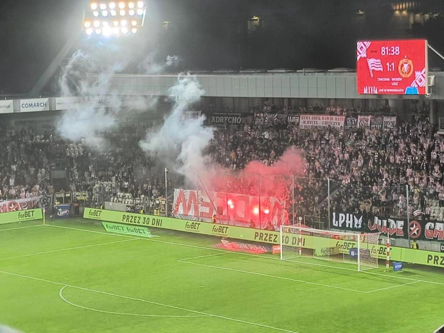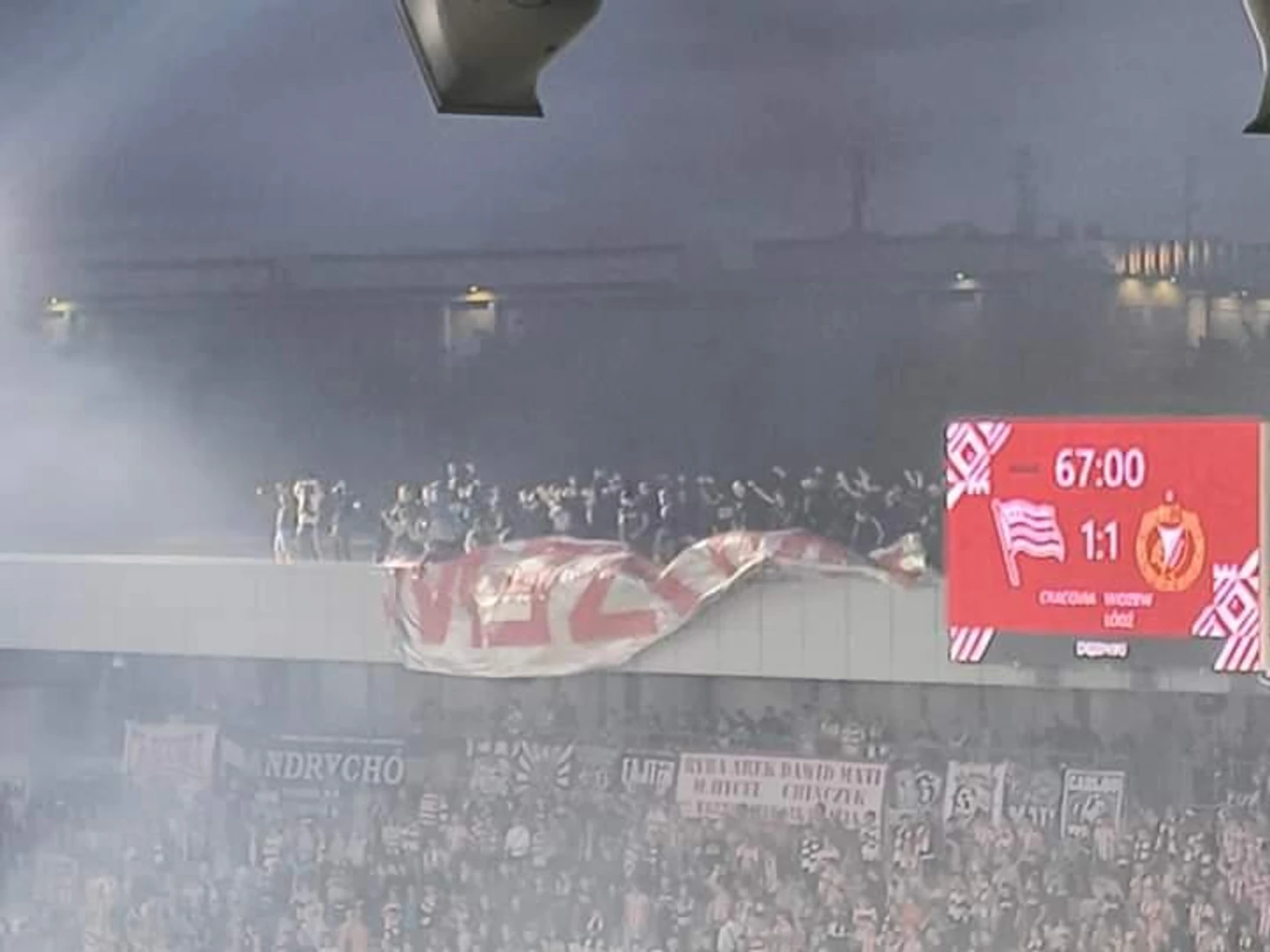 Все самое интересное началось на 62-ой минуте матча при равных цифрах на табло. Дело в том, что над гостевым сектором на стадионе «Краковии» виднеется надпись ''Cracovia Pany'' (что-то вроде ''Краковия Короли''). Фанаты гостей решили немного видоизменить этот девиз. На крыше над гостевым сектором появилось несколько фанатов лодзинцев, которые заменили название краковского клуба на название своей любимой команды с помощью небольшого баннера.