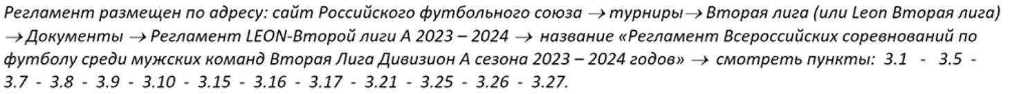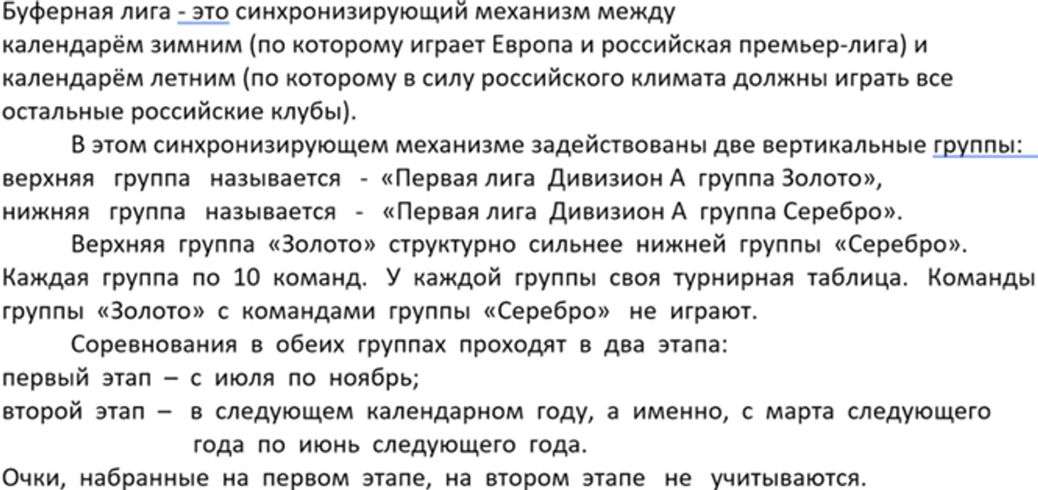 Фрагменты из регламента введенной в 2023 году Российским футбольным союзом буферной лиги.