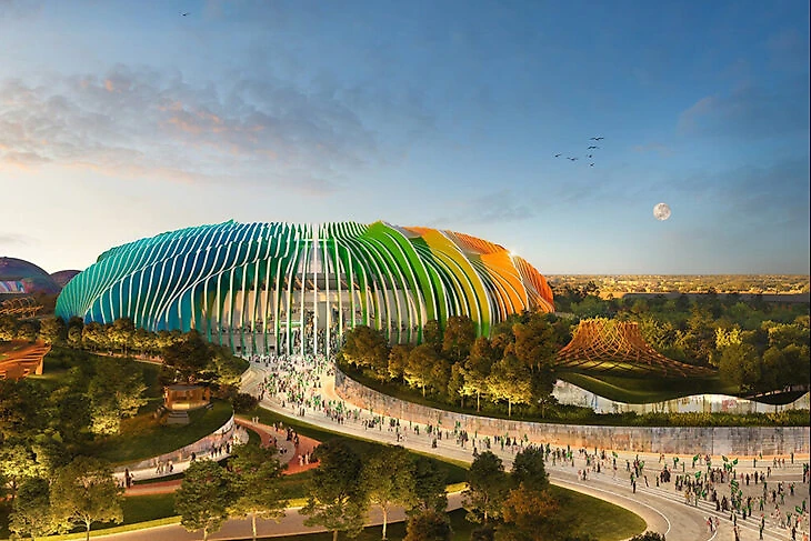 Стадионы будущего к ЧМ-2034: на вершине небоскреба, в виде волн, парусов и коры деревьев