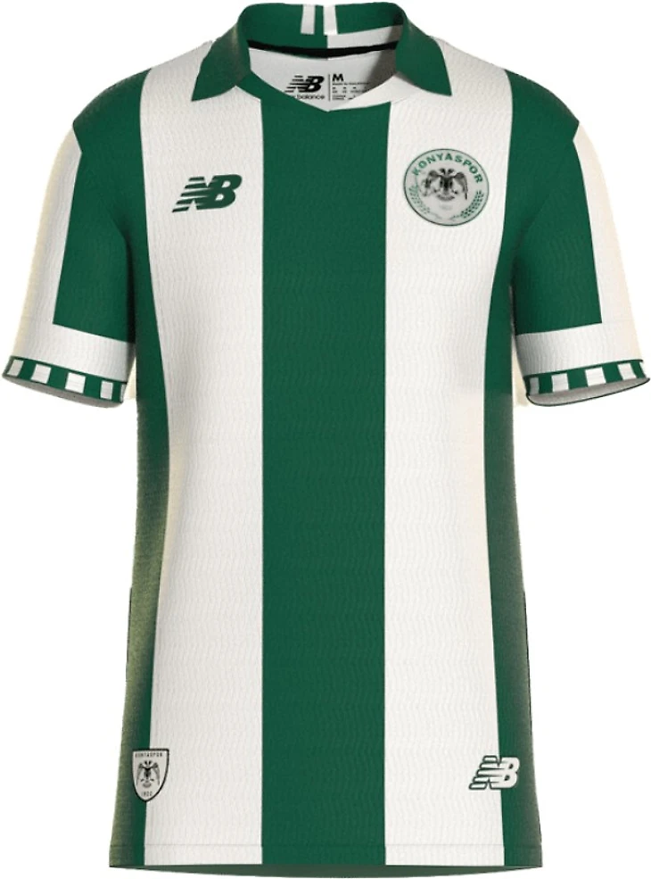Домашняя форма выполнена в классических цветах с интересным узором на манжетах, в выездном комплекте добавлен золотой цвет с сельджукским узором, а третья джерси выполнена в темно-зеленом цвете с узкими классическими полосами и воротником.