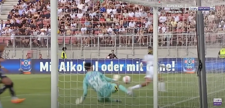 5. К 15-й минуте наши вратари пропустили уже три гола, залетело и Сафонову. Защитники «ПСЖ» не справились с перепасом, а форвард австрийцев Амади Камара убежал один на один и катнул между ног Матвею.