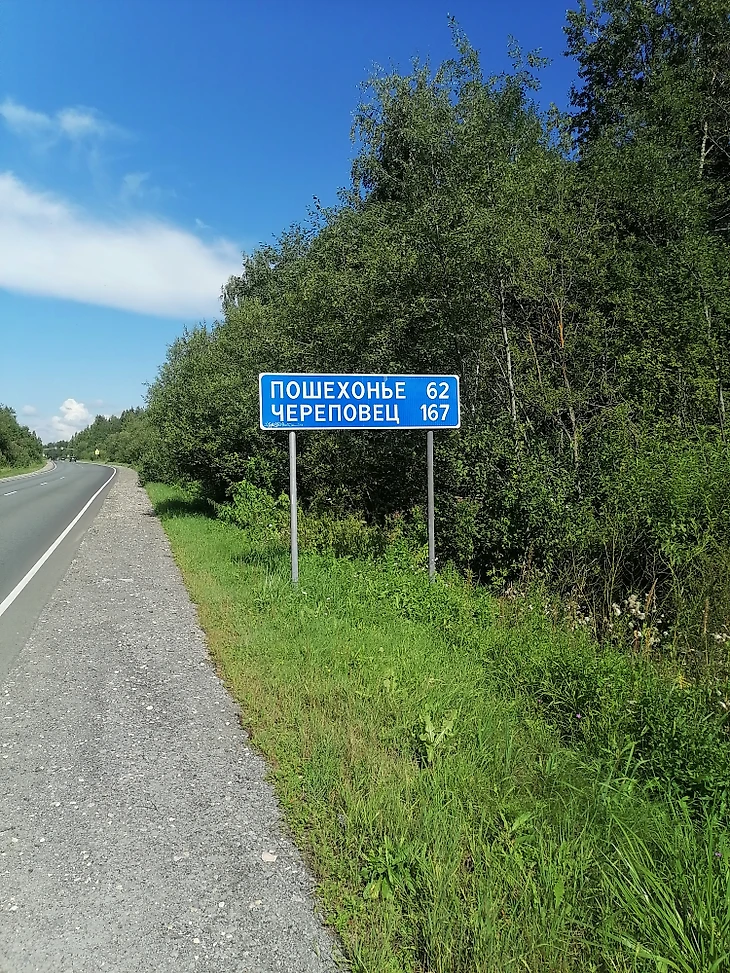 После забега сразу трусцой до машины и спешим в Пошехонье. Путь составит около семидесяти километров и порядка одного часа часов в пути.