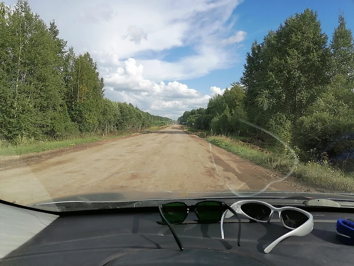 По Пошехонью прогуляться не удалось, так как нужно было ехать в Некрасовское. Помните, в начале текста я решил ехать через М-8? Вот тут-то я об этом и пожалел.😕 По началу дорога идет новая, гладкая. Затем появляются пара-тройка участков с большими и глубокими ямами. Скорость держал около 30-40 км./ч. Местами нужно было останавливаться, чтобы объехать очень большие и глубокие ямы. Ну а затем, как вишенка на тортике, появилась грунтовка протяженностью порядка пяти километров. 😨