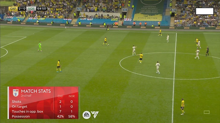 Следующие несколько минут продолжились в том же духе: «Оксфорд» долго разыгрывал мяч, тщательно выискивая возможности для продвижения. «Юнайтед» были почти вознаграждены, когда Брэннаган нашел рывок бывшего вингера «Норвича» Плахеты, который пробил прямо в голкипера Ангуса Ганна, а затем прострелил мимо дальней штанги.