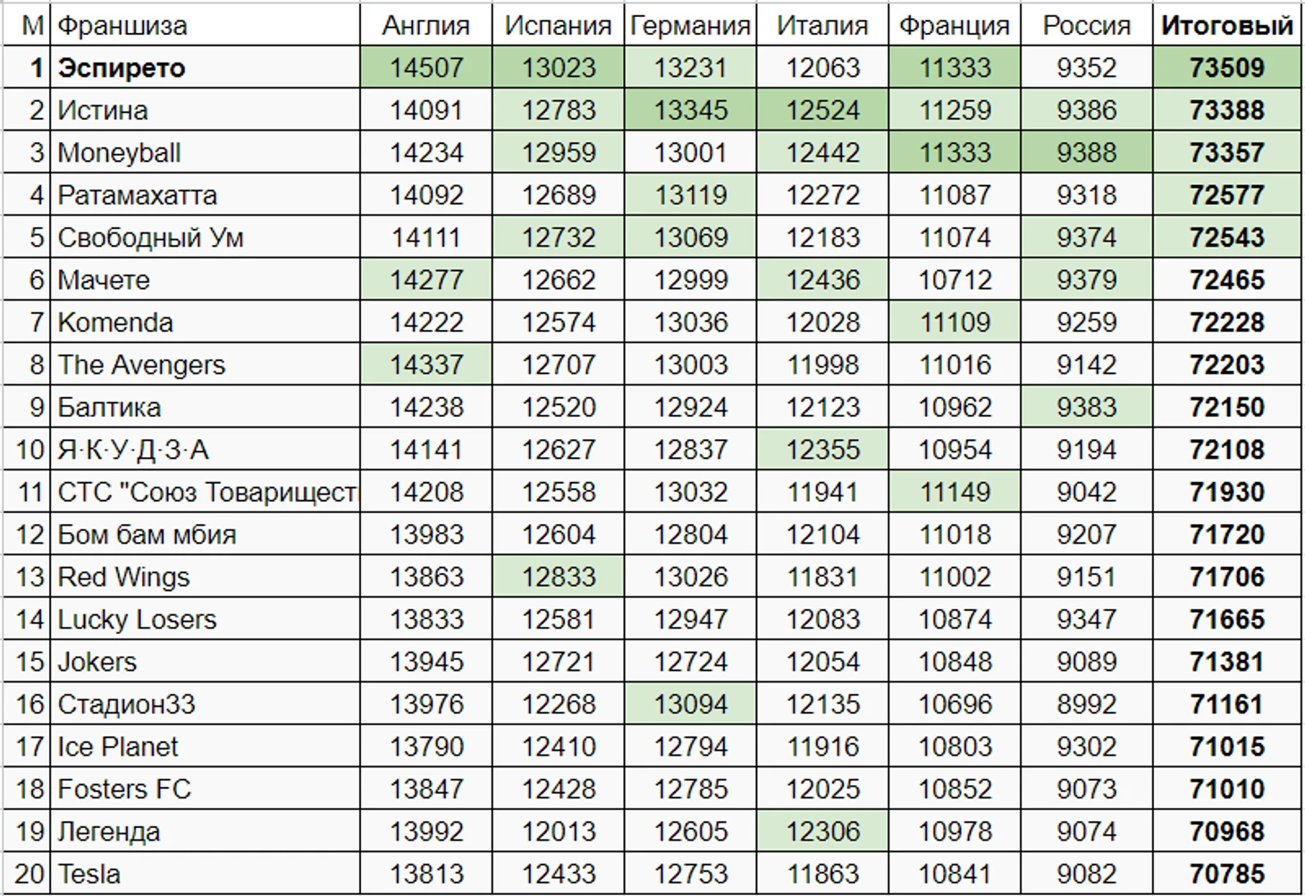 1) По общему количеству набранных ФО Эспирето оказалась на 1-ом месте с отрывом от ближайших преследователей в 170 фо. Один из главных критериев «мощности» команды в сезоне.