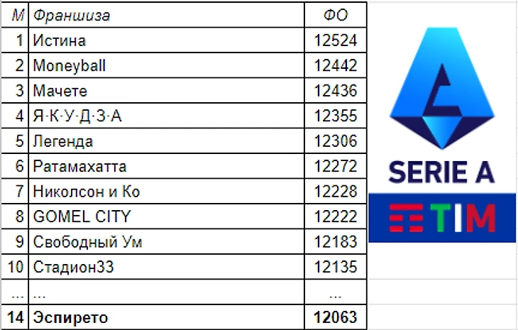 В Италии у нас все сложно. Вроде бы у капитана в обойме уйма качественных игроков, но каждый сезон играть приходится через преодоление и тотальное непонимание почему обычная фентези-логика не работает декорациях Микеланджело, Мальдини и Челентано.. Правда в этом сезоне нам повезло на трансферном рынке: Игорь (COM.bat)- суперкомандный игрок и вдобавок разбирается в Италии лучше чем Фабрицио Романо в инсайдах, а Козим (kozim98) - вообще стал лучшим игроком Эспирето в этом итальянском сезоне.