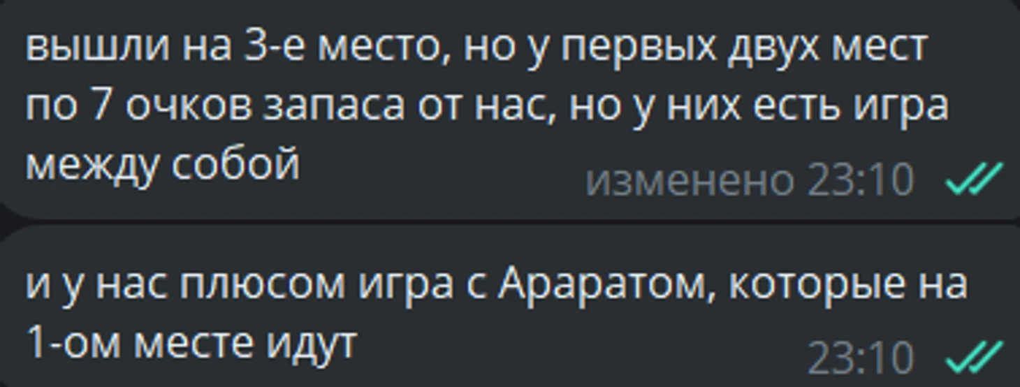 Соперники в споре за титул мощные (Арарат как раз в АПЛ очень сильная команда), к тому же имеют неплохой задел.